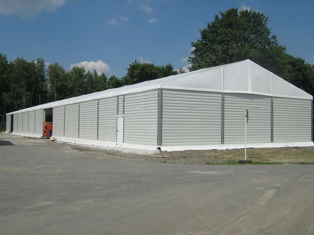 Stanová hala může být na přání vybavena posuvnými vraty, dveřmi, dřevěnou podlahou, topením, osvětlením, nábytkem atp.