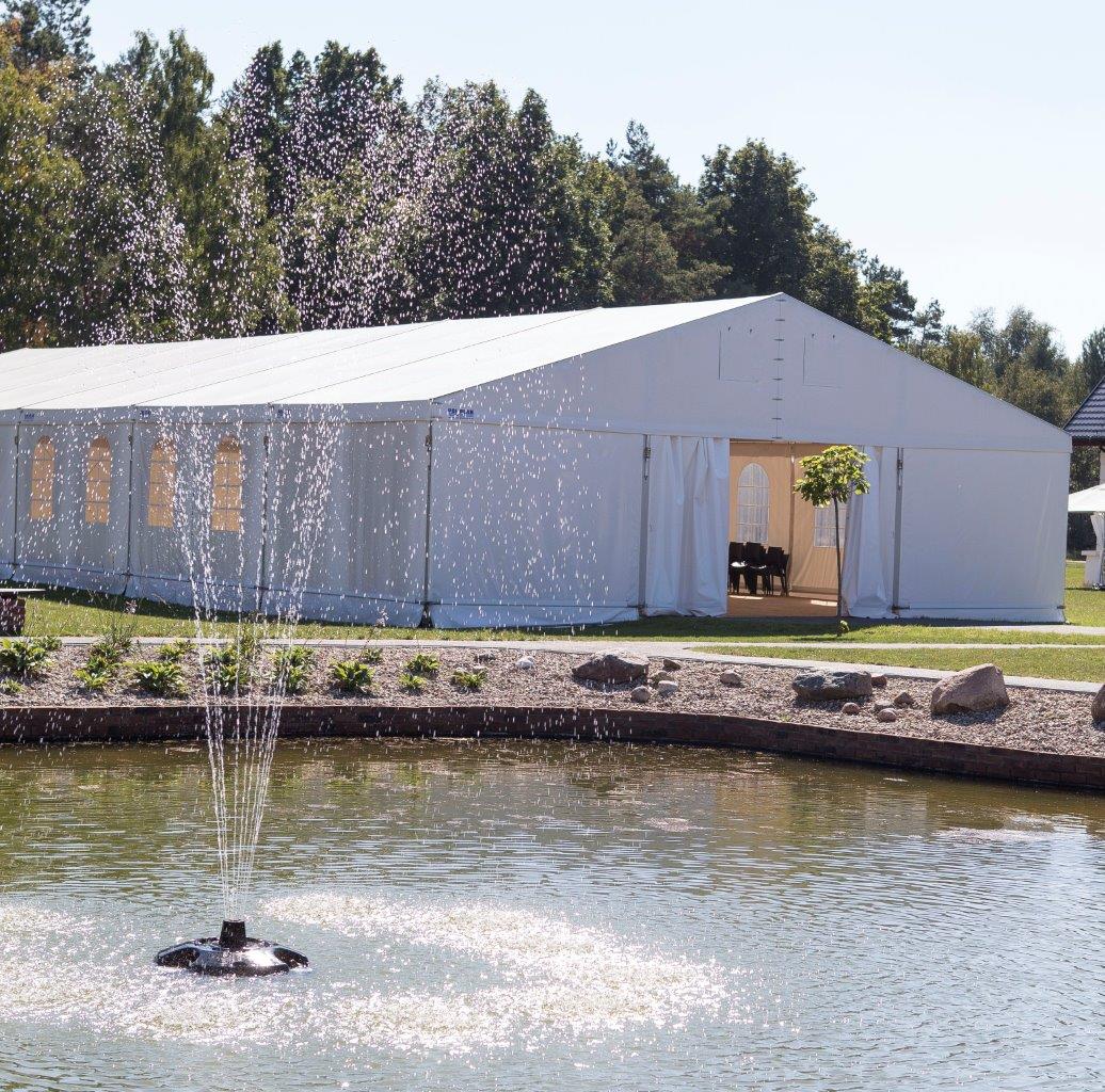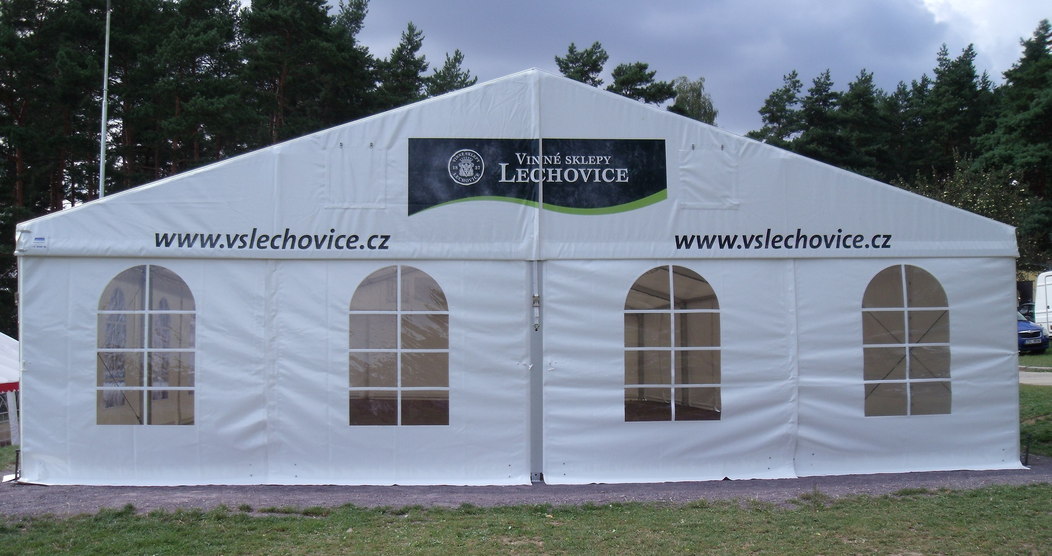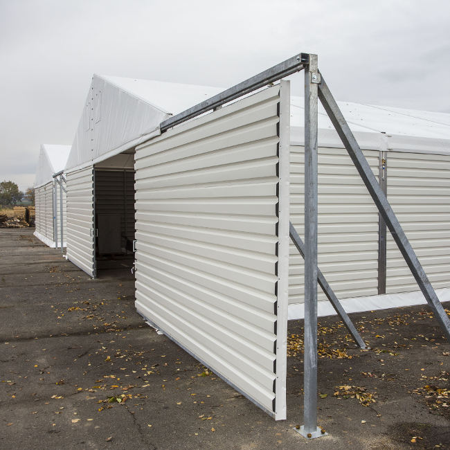 Standardní boční výška stanové haly: 2,5 m. Max. boční výška stanové haly: 5 m
