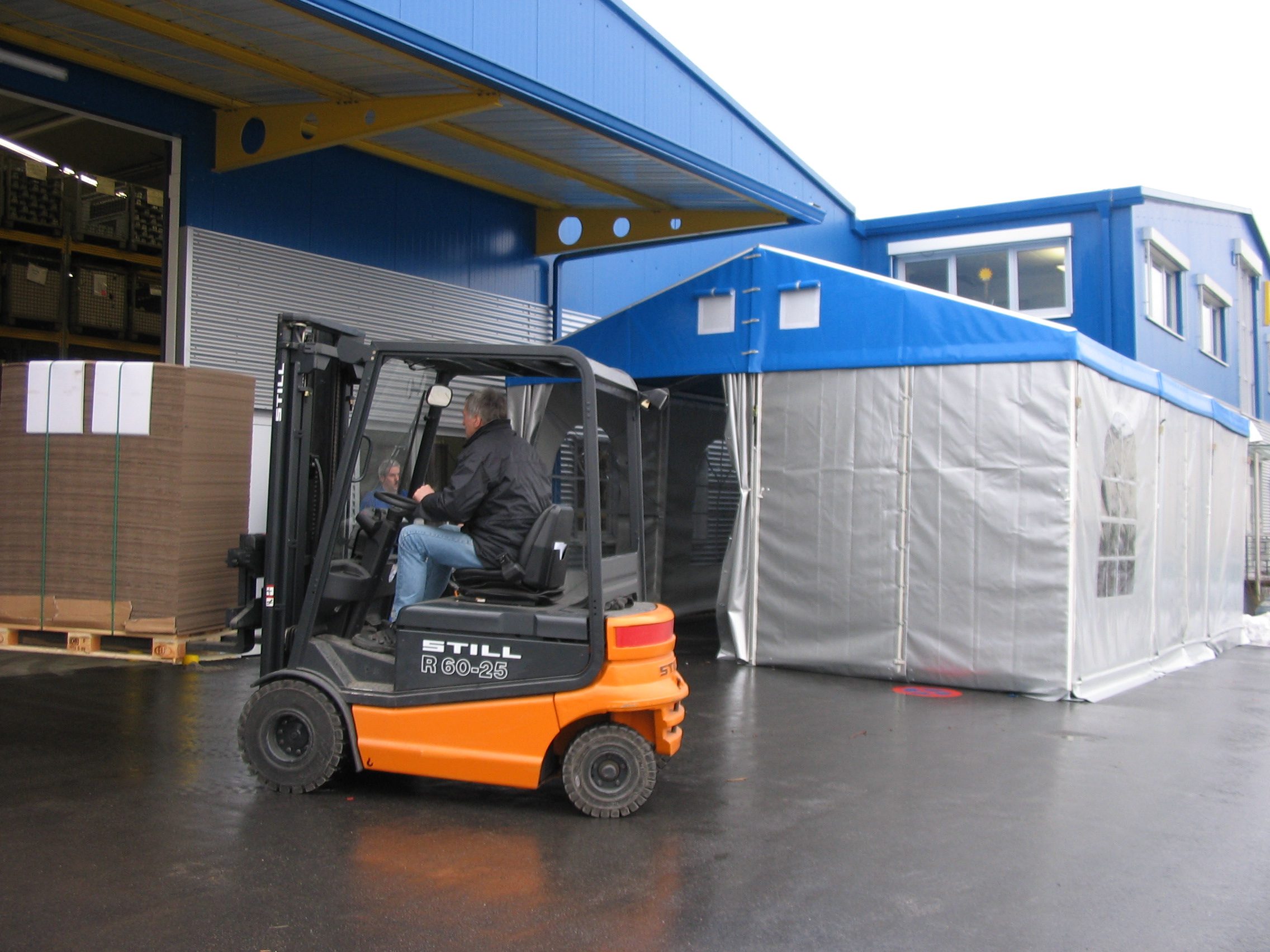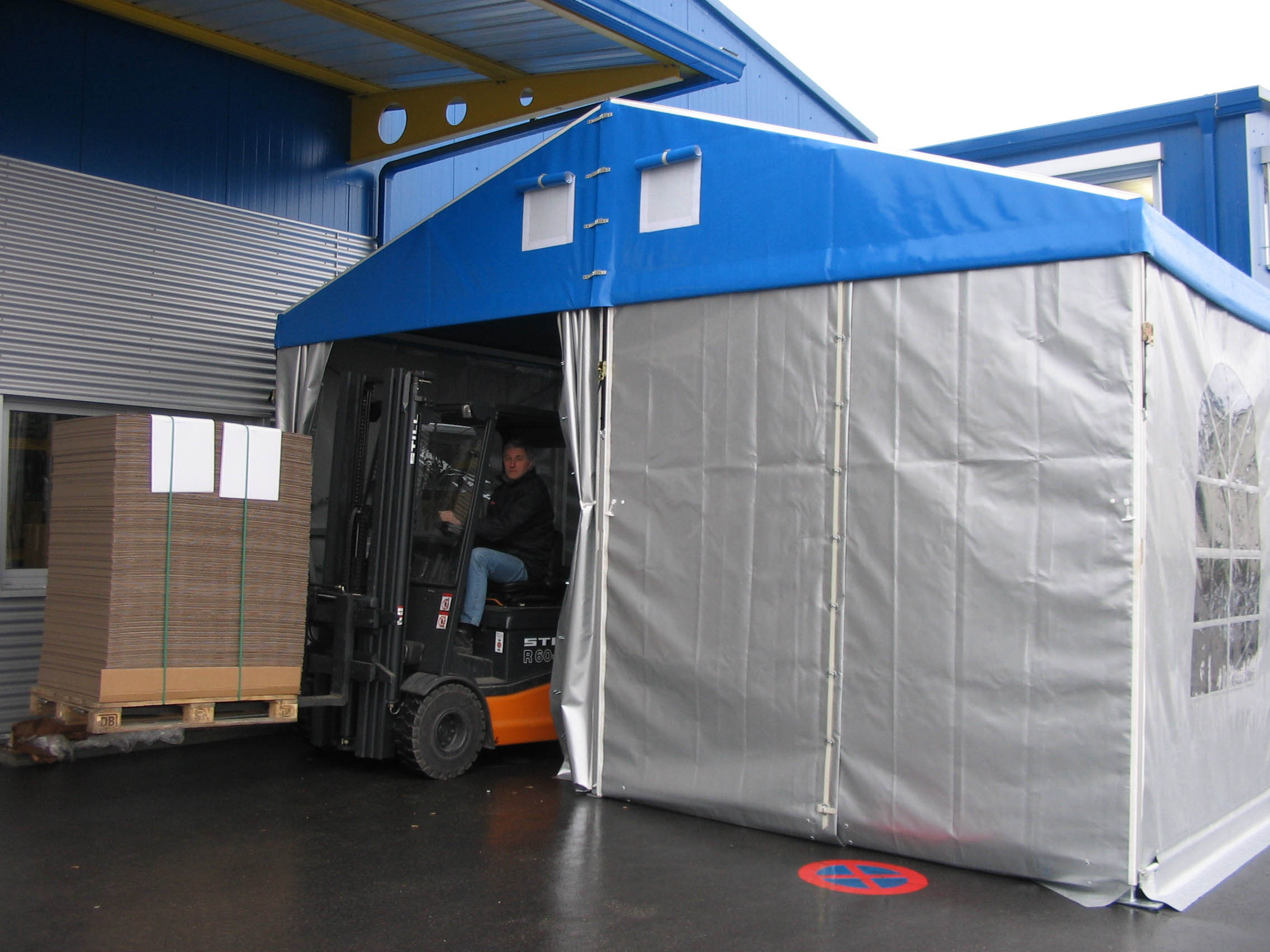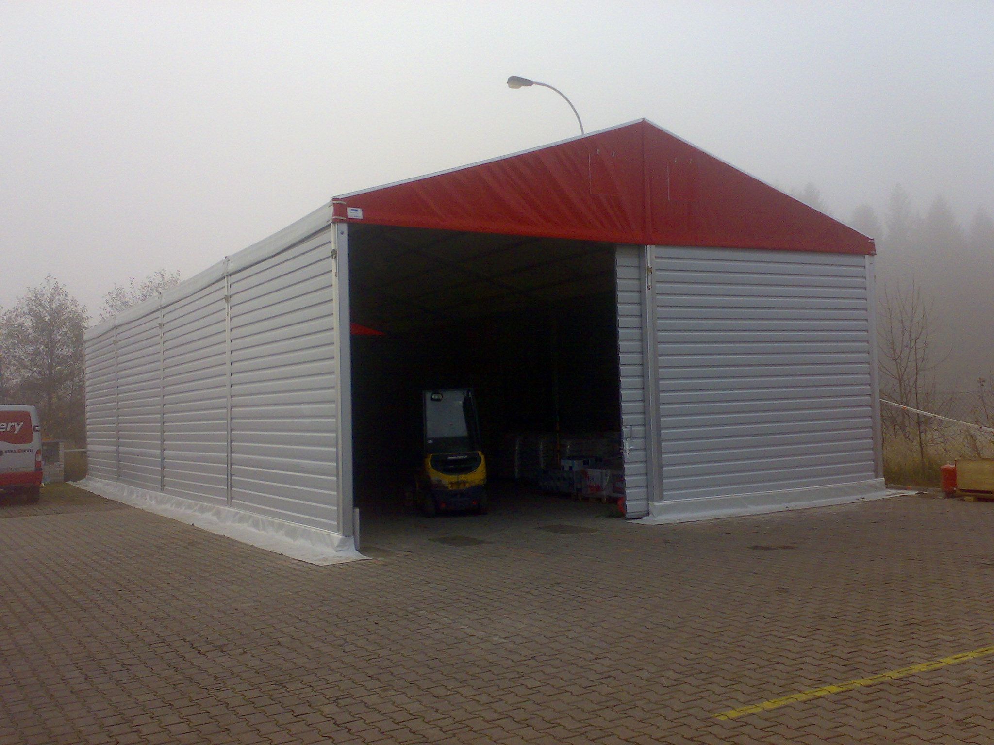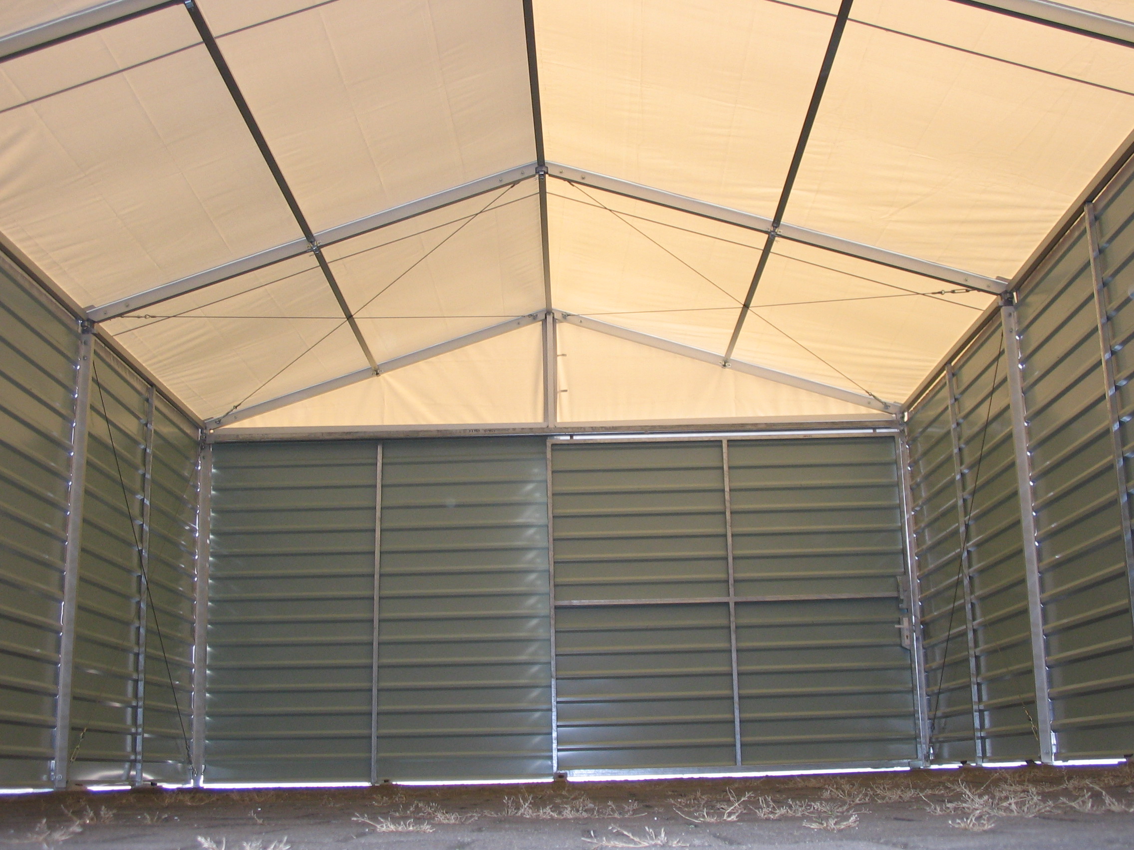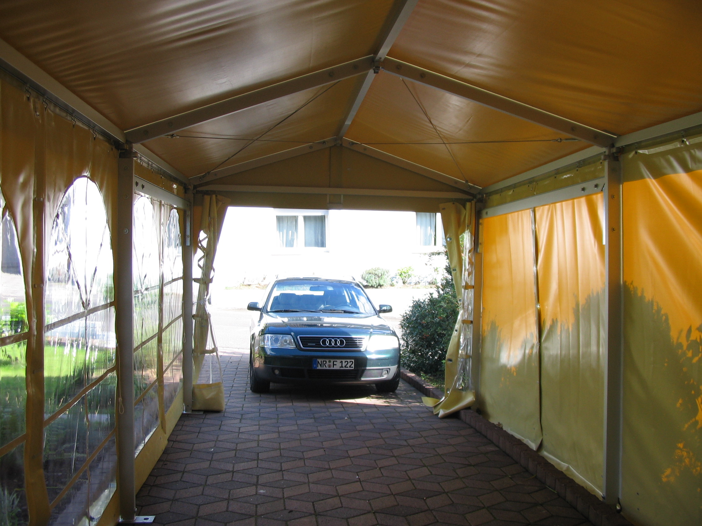 Čelní a boční plachty párty stanu mohou být nahrazeny trapézovým pozinkovaným plechem T35 s lakoplastovou úpravou nebo kvalitními ABS panely. Tento typ opláštění je často využíván pro zvýšené zabezpečení skladovaného zboží.