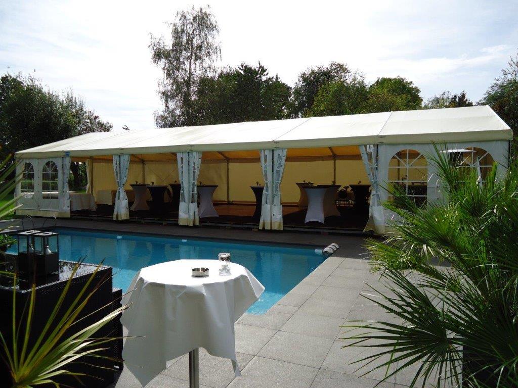 Párty stan ALFA může být na přání vybaven dveřmi, podlahou, klimatizací, topením, osvětlením, nábytkem atp.