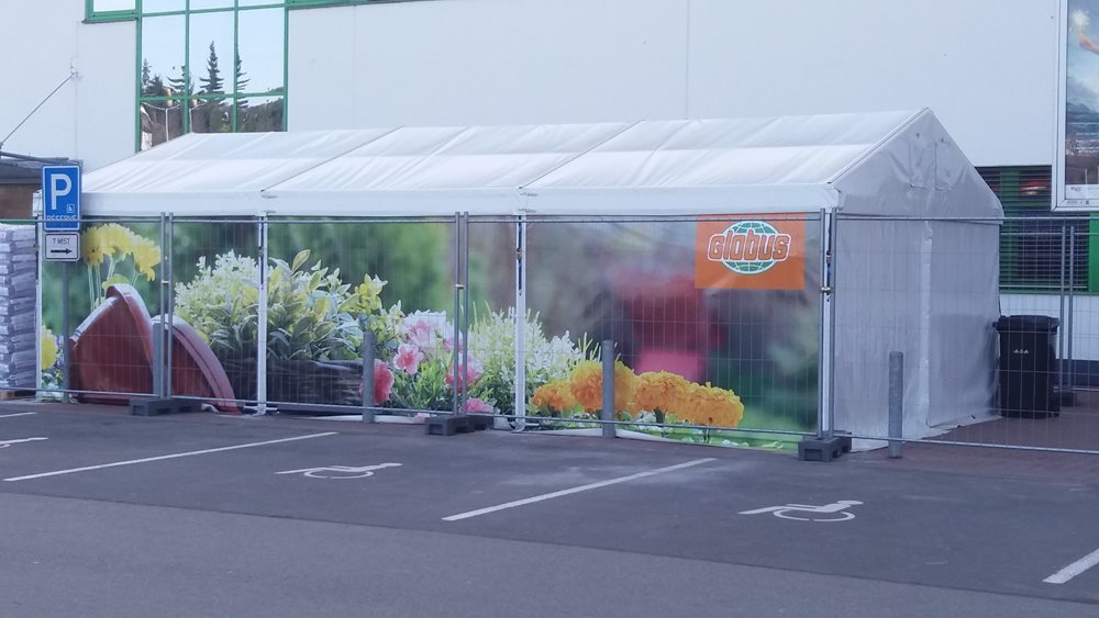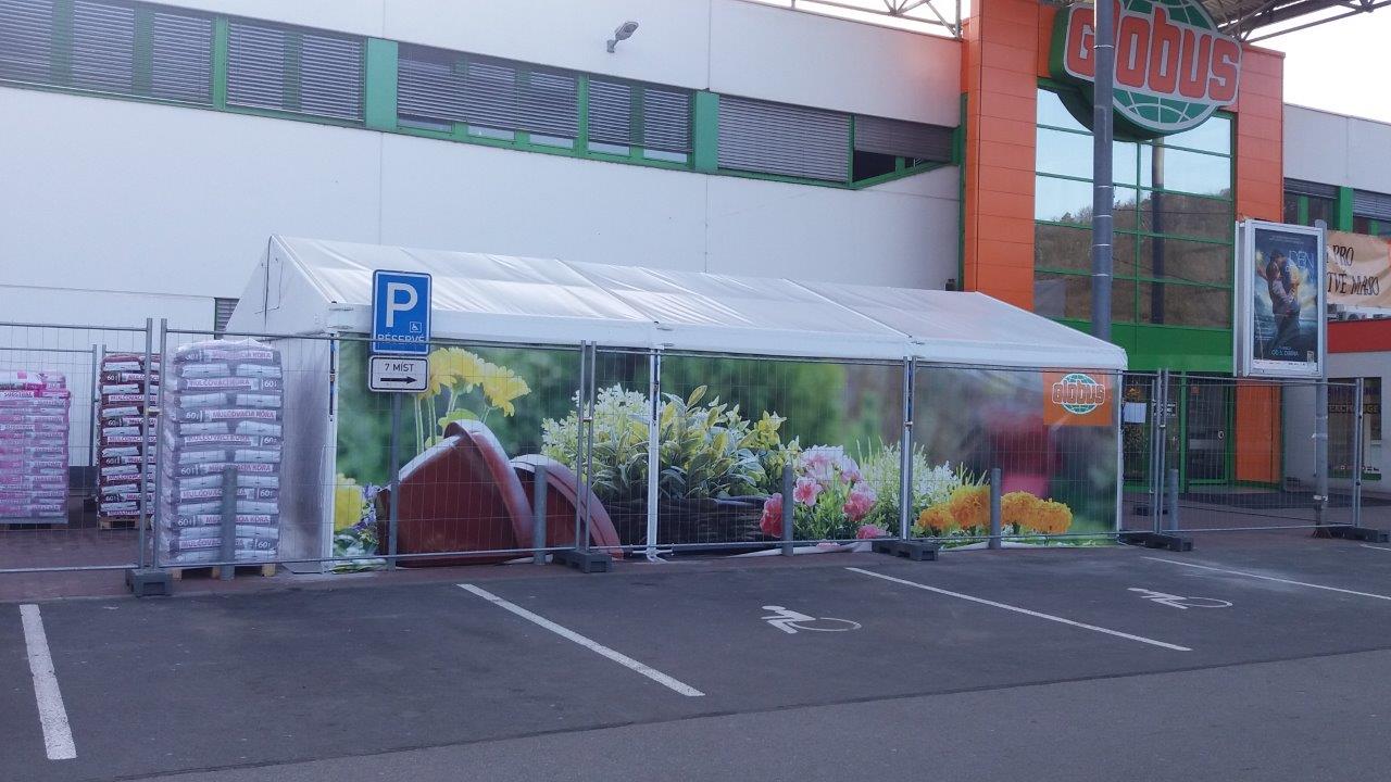 Plachty párty stanu je možné libovolným způsobem potisknout a získat tak hezký originální design (použité technologie: digitální tisk, sítotisk, samolepící folie, řezaná grafika). Rádi vám ZDARMA zpracujeme grafický návrh dle vaší představy.