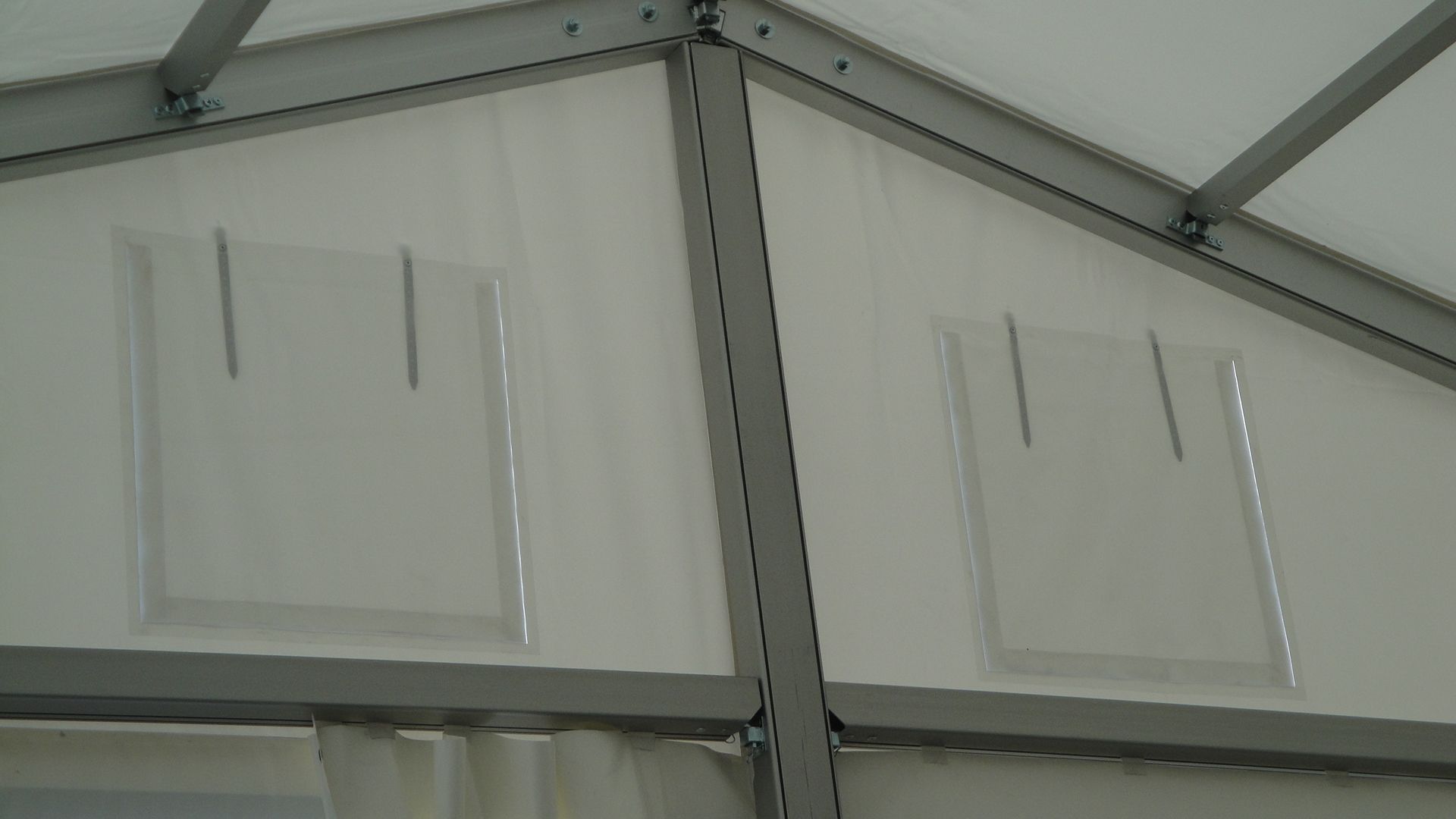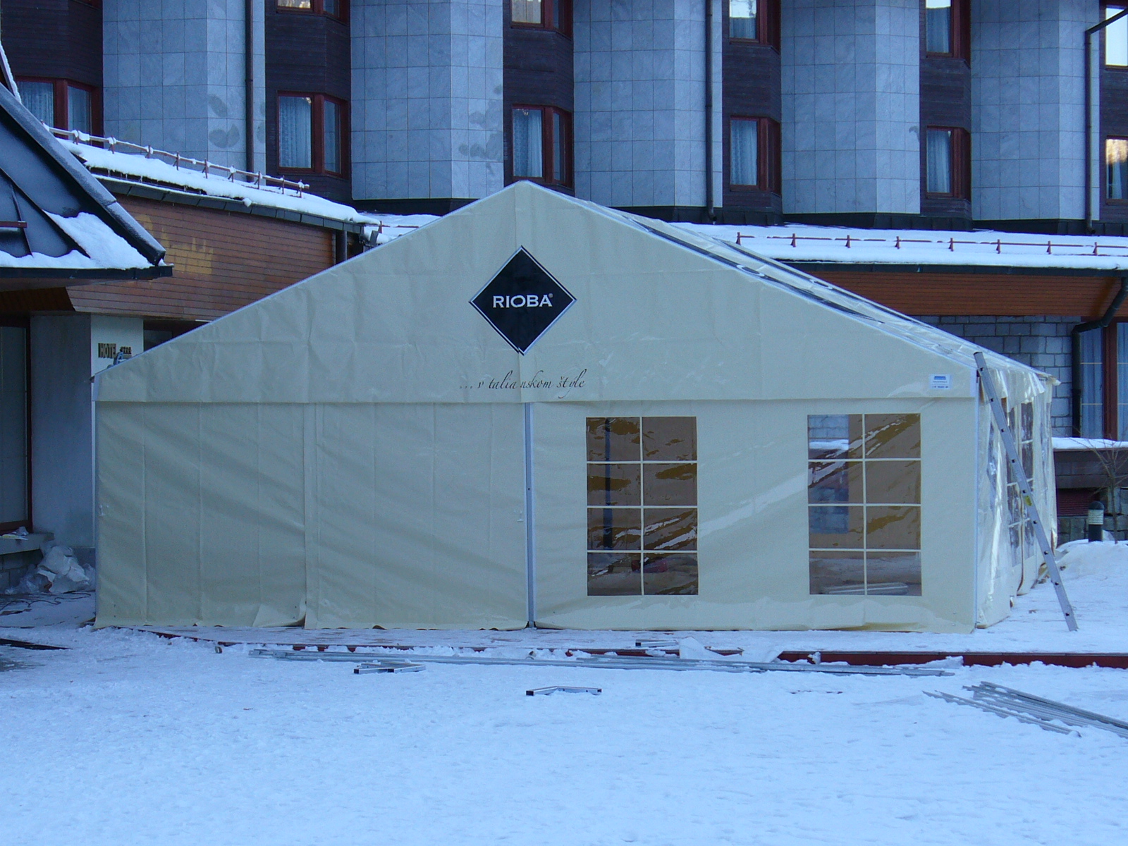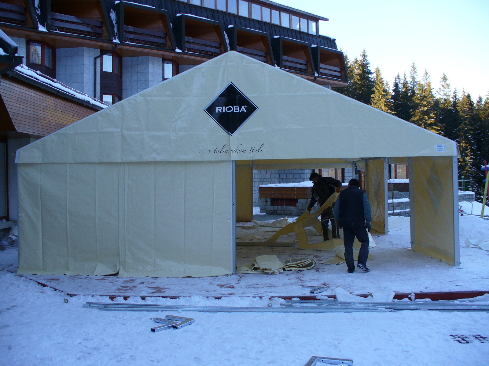 Standardní párty stany dodáváme se základním sněhovým zatížením. V zimě je nutné sníh ze střech stanu mechanicky odstraňovat nebo stan pod střechou temperovat na minimální teplotu 12 °C.