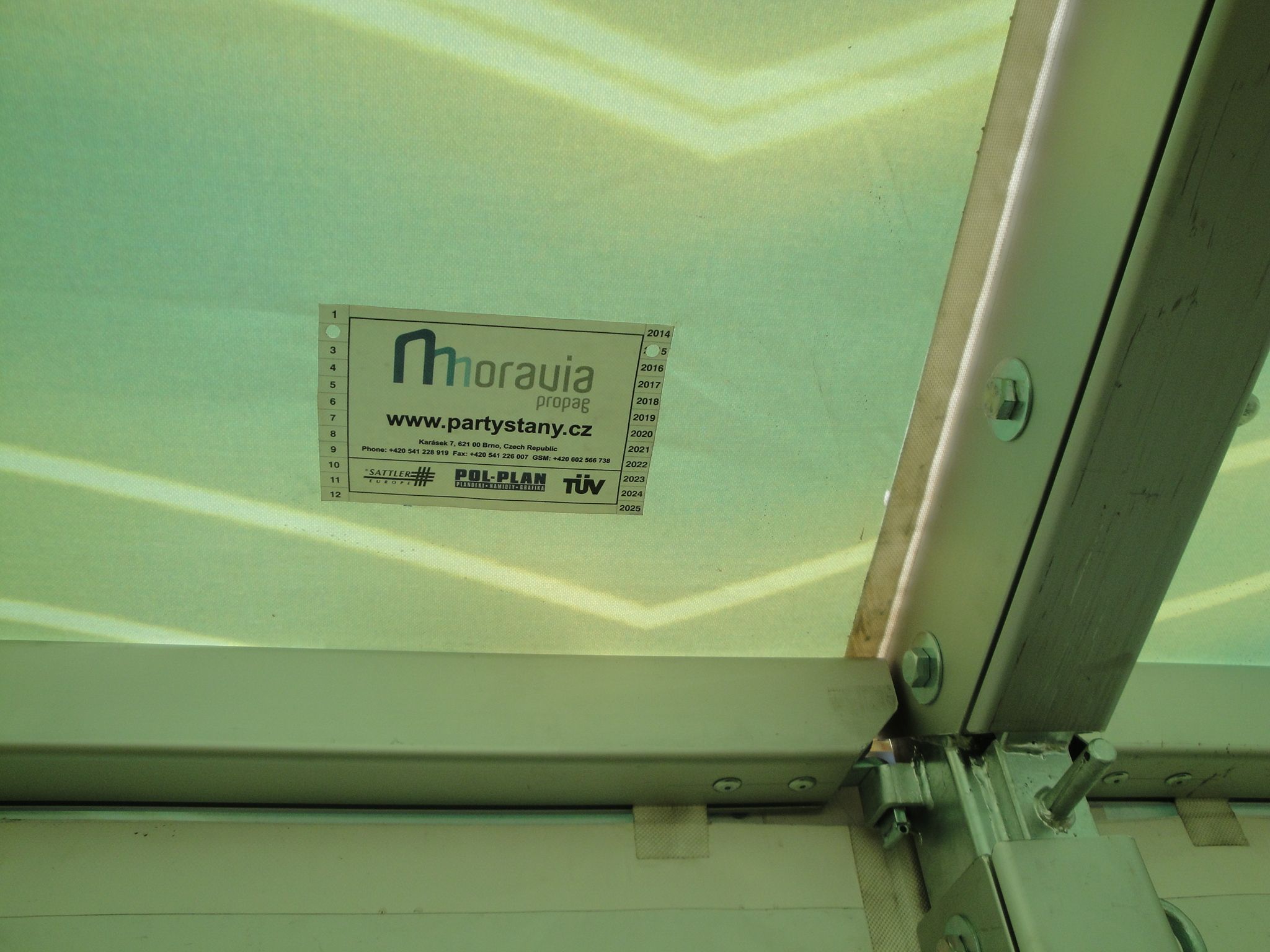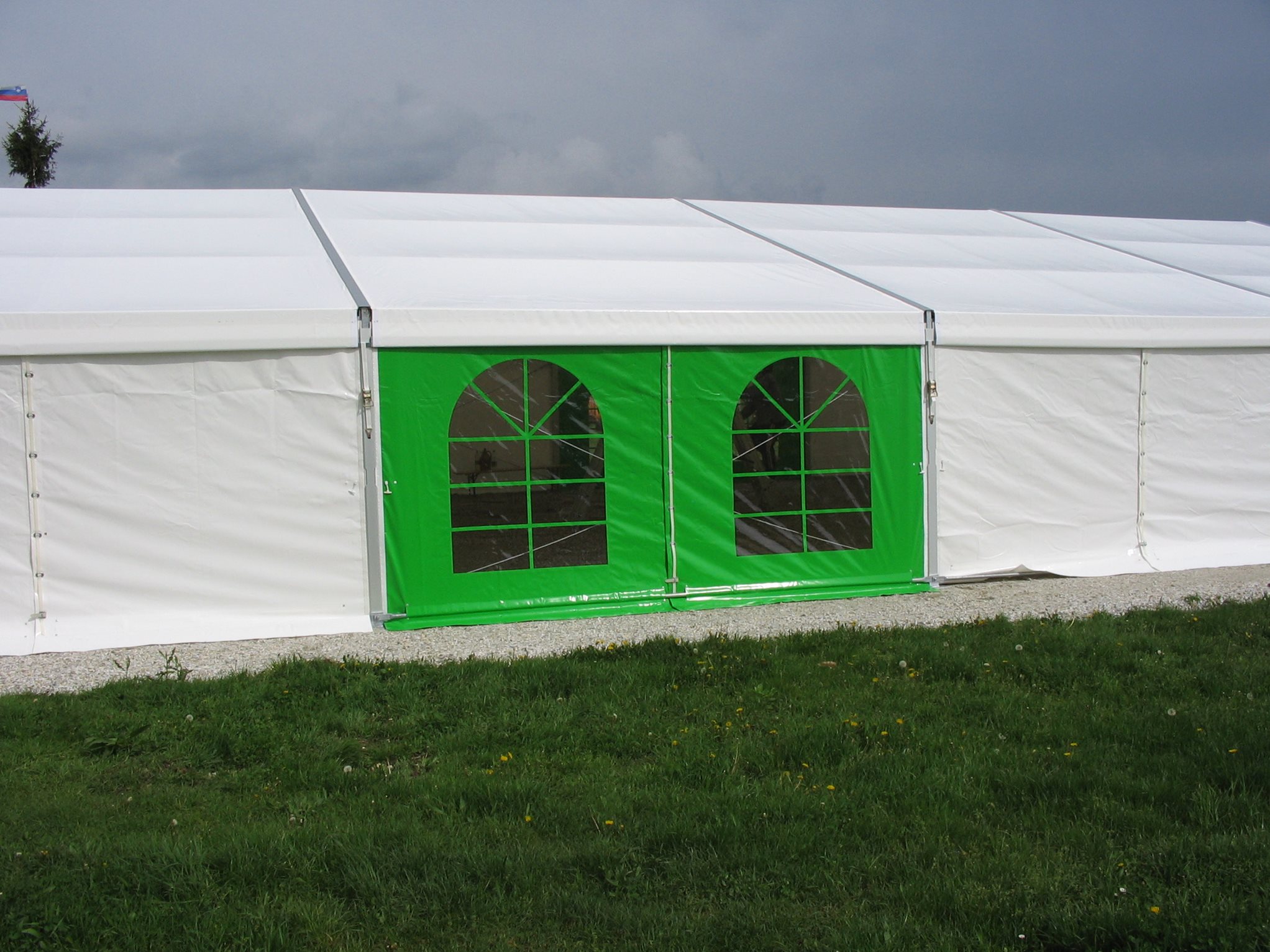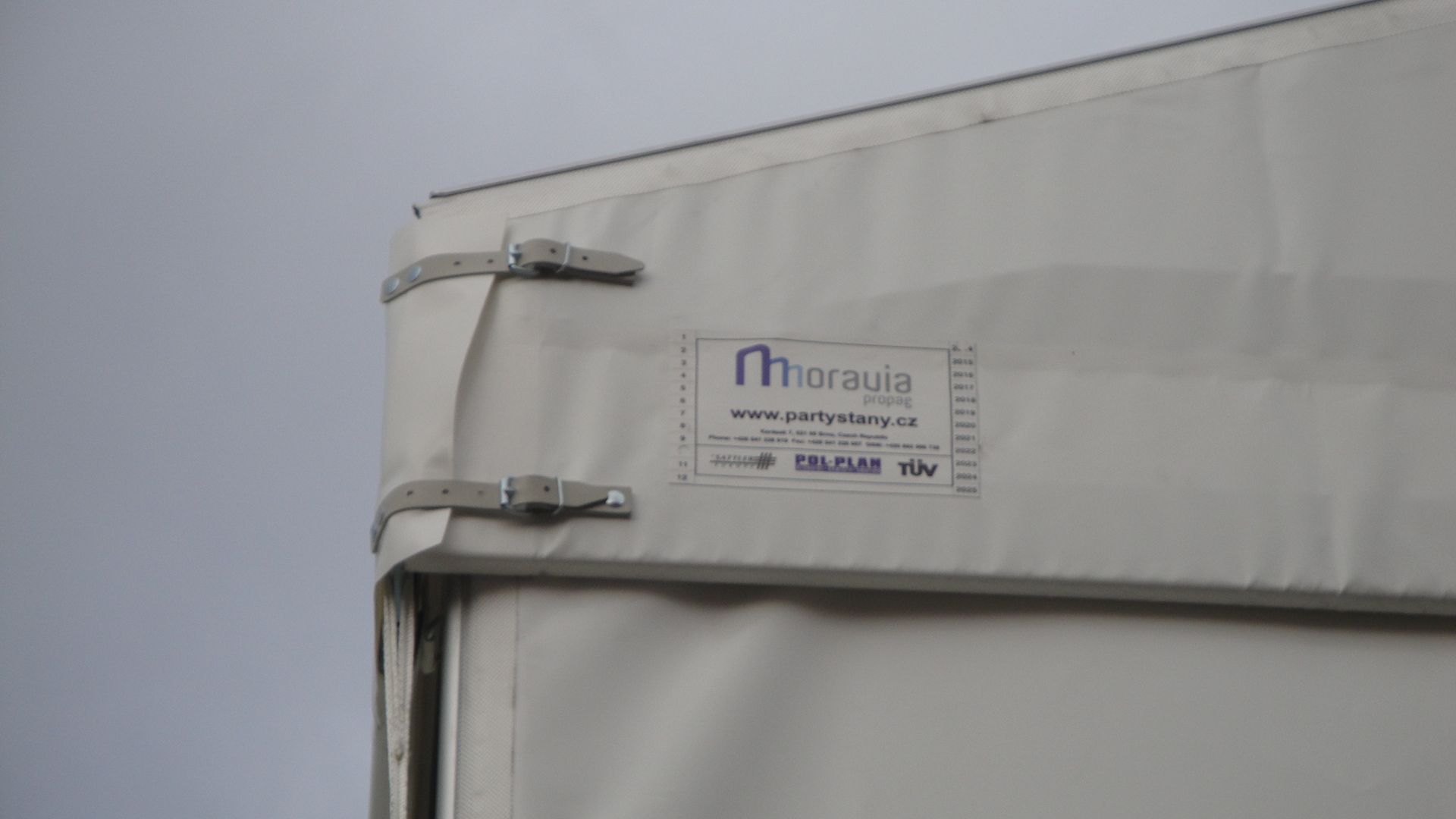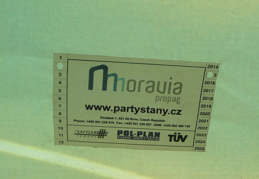 Garantujeme provozování párty stanů do rychlosti větru 72 km/hod (tzn. čerstvý vichr) v závislosti na způsobu kotvení a typu podkladu.