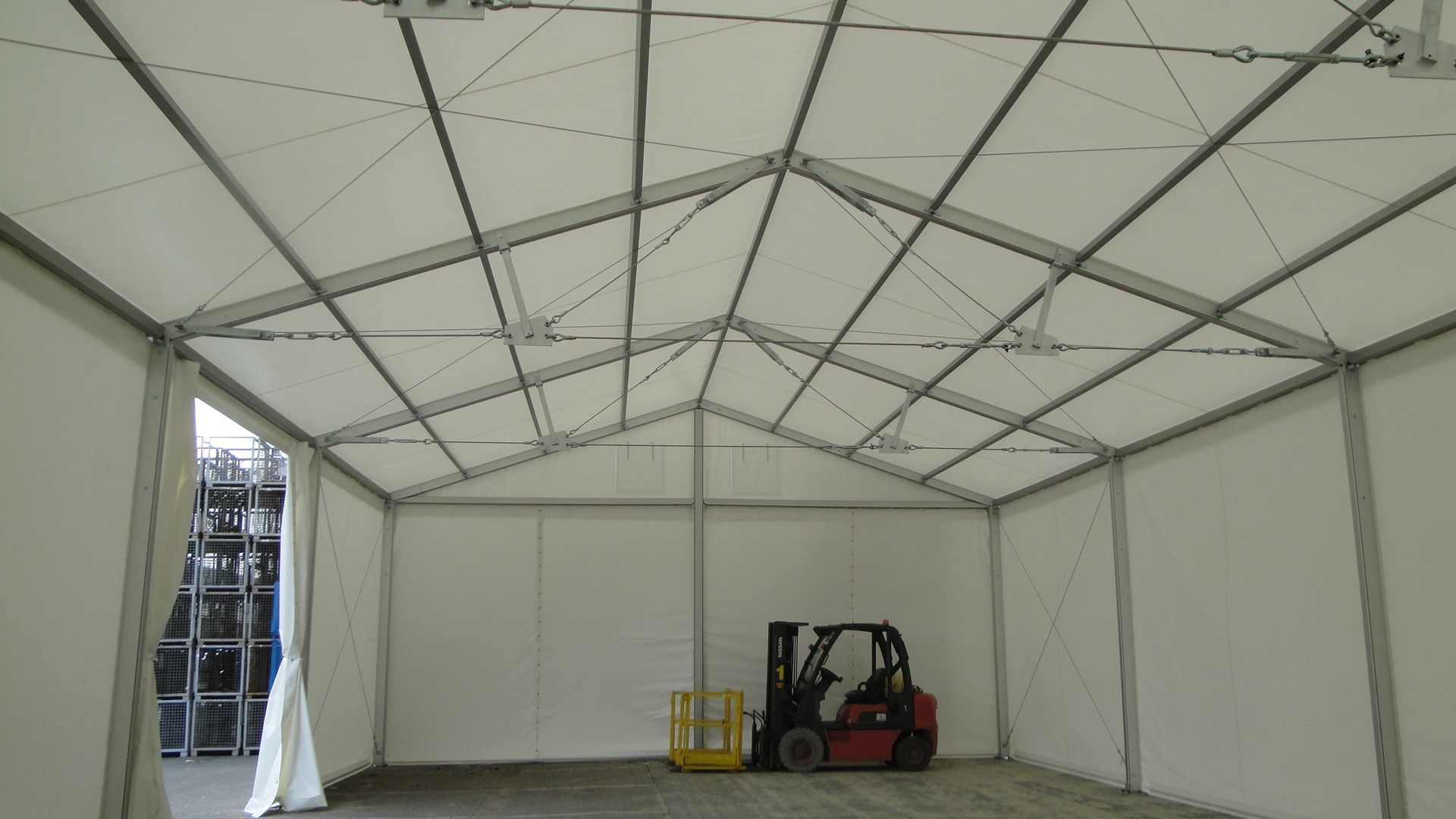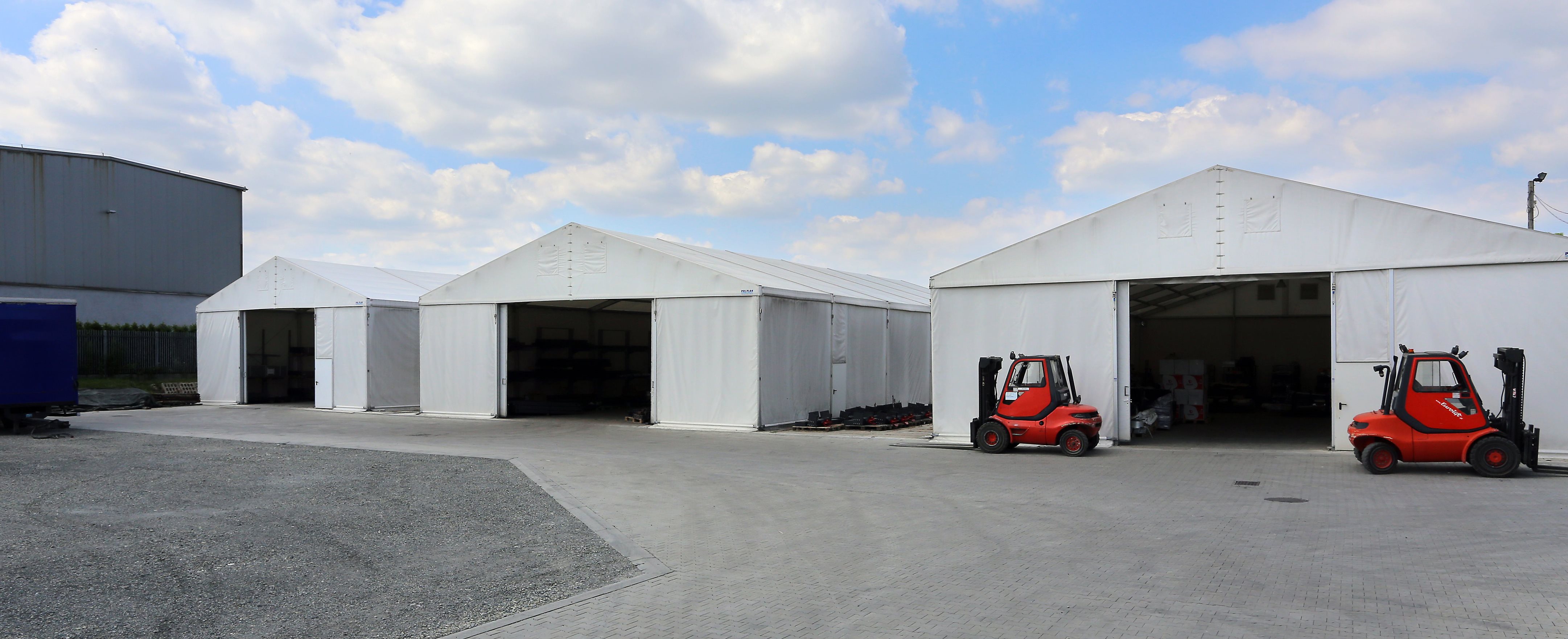 Nabízíme i speciálně upravené zátěžové stany se zvýšenou odolností proti větru a zatížení sněhem (až 1,5 kN/m2). Nabízíme rovněž i stany s nafukovací střechou, do které je vháněn vzduch výkonným kompresorem a nafukování střechy tak zajistí odstraňování sněhu ze střechy skladové haly.