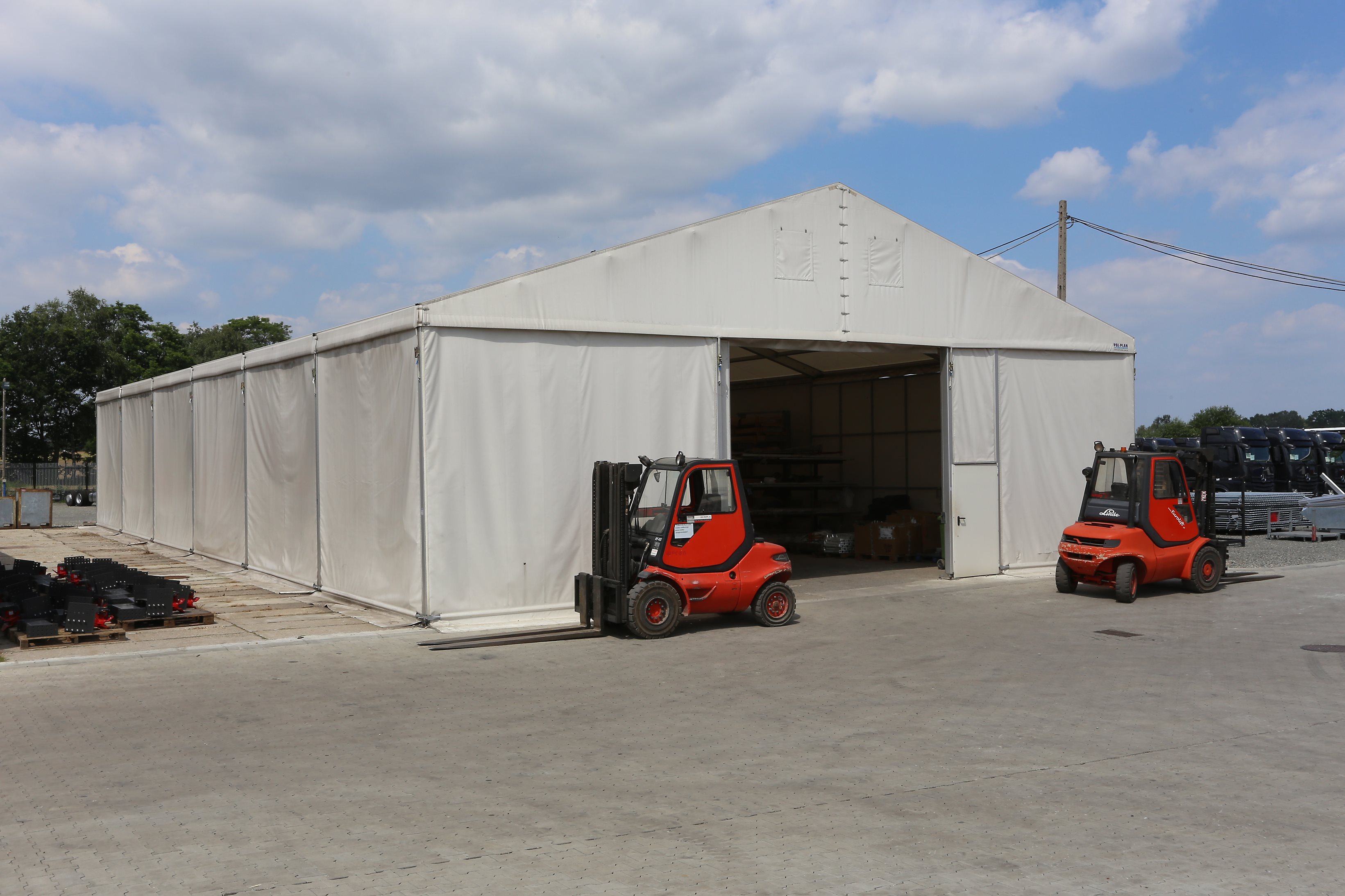 Čelní a boční plachty mohou být nahrazeny trapézovým pozinkovaným plechem s lakoplastovou úpravou, tento typ opláštění je často využíván pro zvýšené zabezpečení skladovaného zboží.