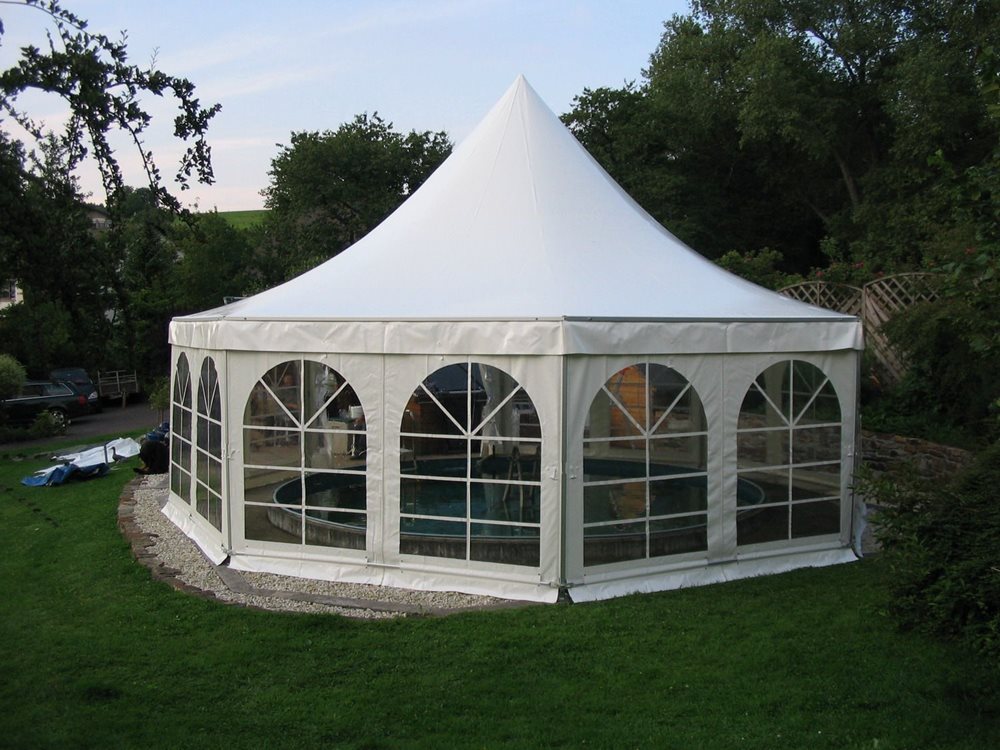Standardní boční výška pavilonu: 2,3 m. Výška ve vrcholu střechy: 5,4 m.