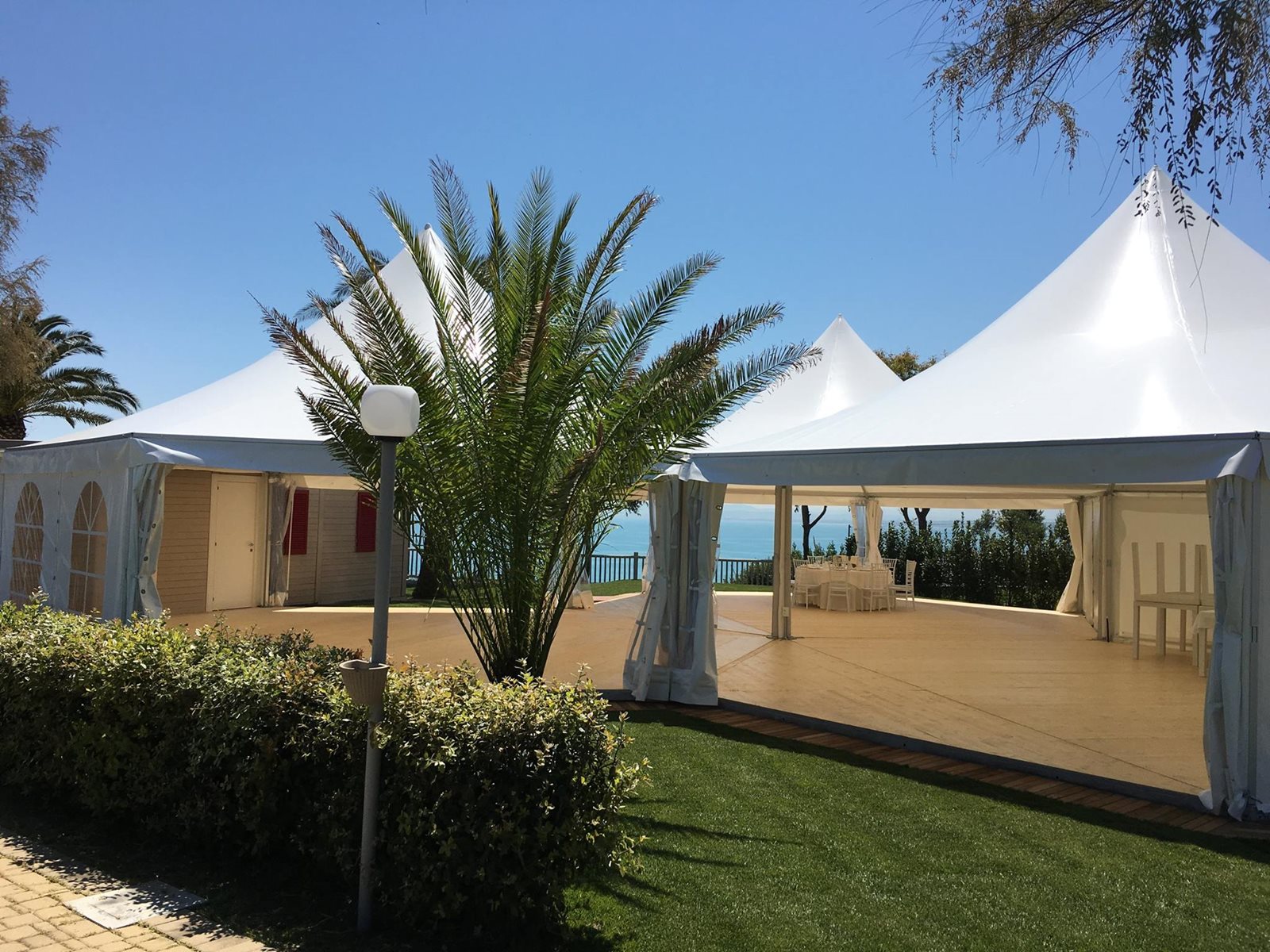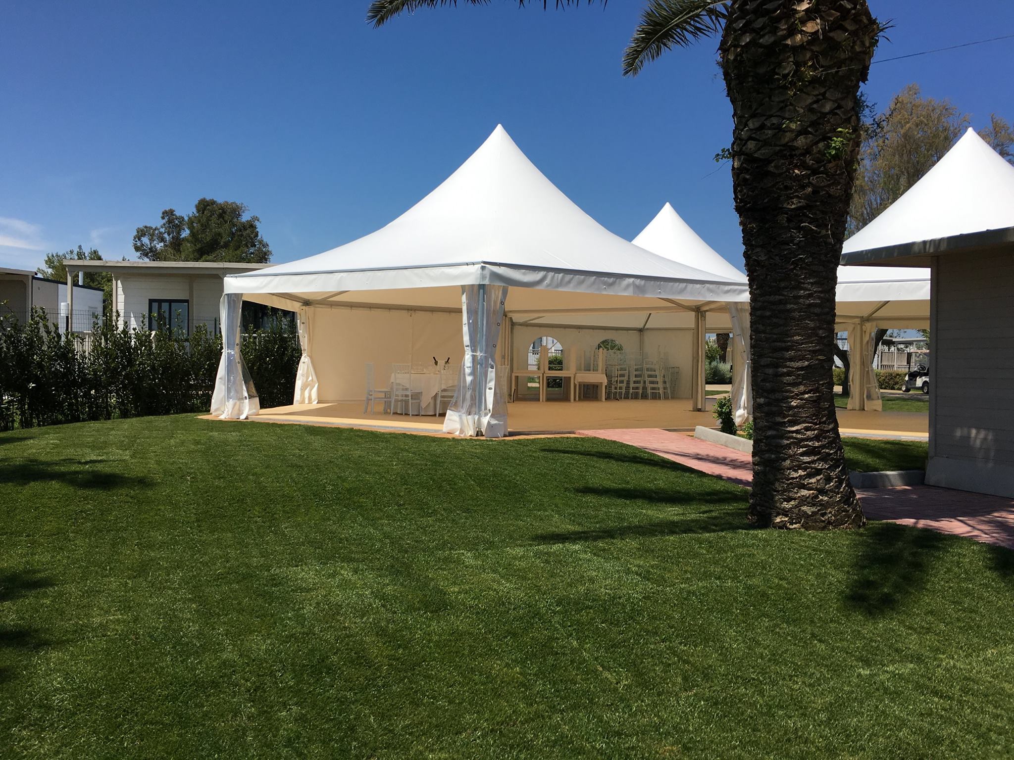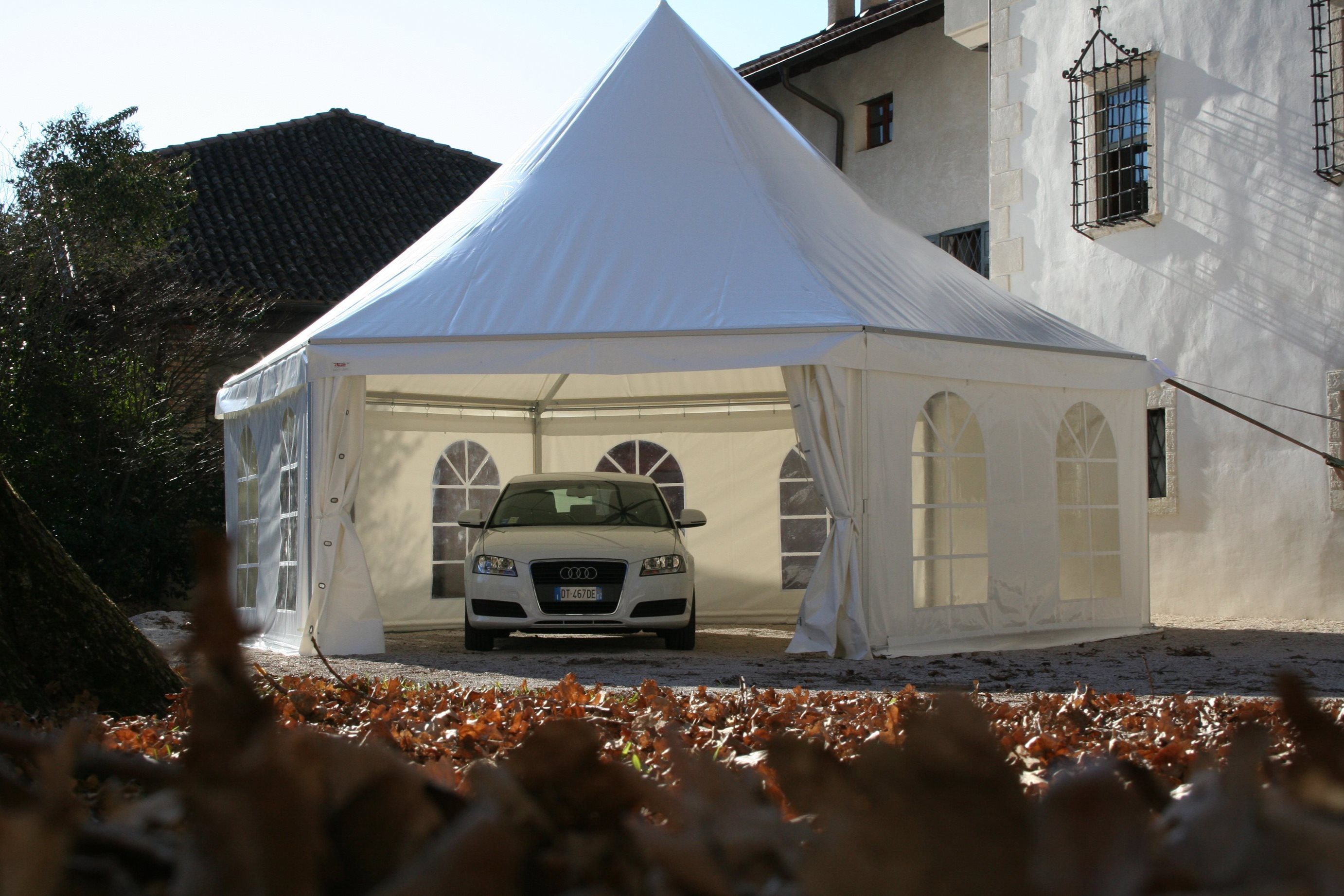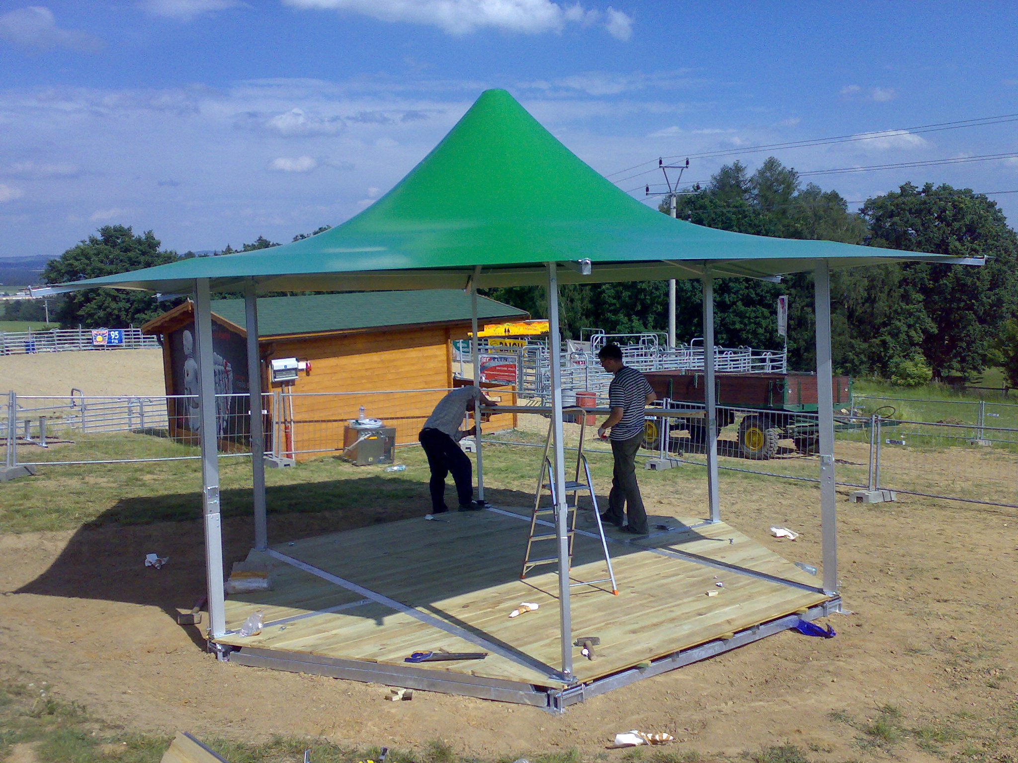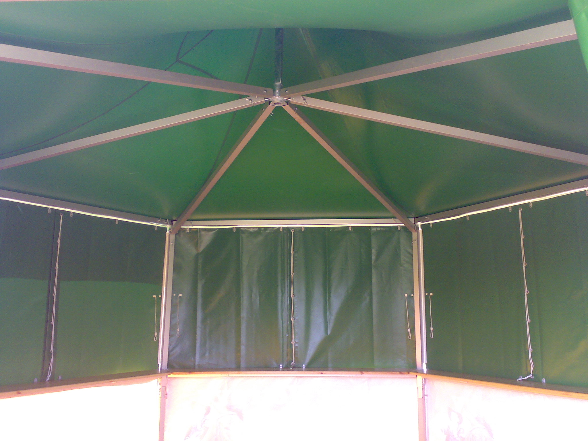 Standardní boční výška pavilonu: 2,25 m. Výška ve vrcholu střechy: 4,85 - 5,85 m (v závislosti na zvoleném rozměru pavilonu).